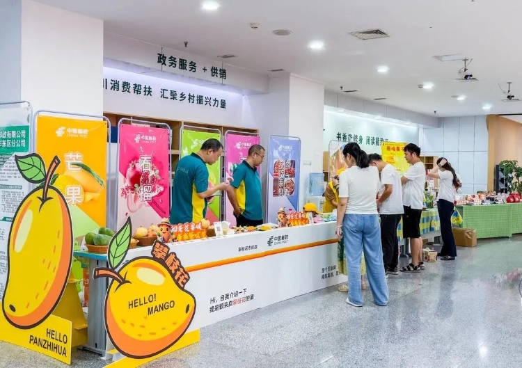 攀枝花的芒果怎么卖到了省政务中心?原来,这是攀枝花市东区行政审批局在四川省政务服务和公共资源交易服务中心大厅举办的一场“政务精选保品质 农企携手促共富”特色农产品展销活动。