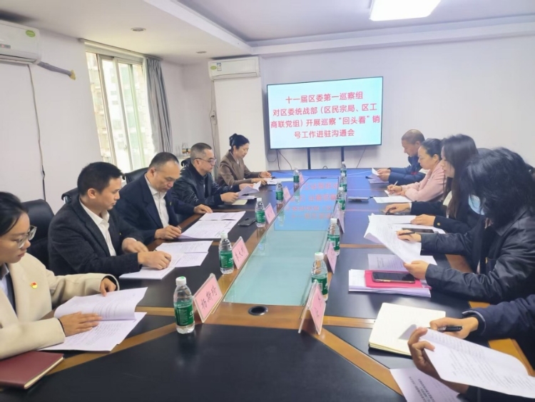 2025年11月20日上午,十一届区委第一巡察组对区委统战部(区民宗局、区工商联党组)开展巡察“回头看”销号工作进驻沟通会在区委统战部会议室召开。会议由区委统战部常务副部长、区委侨务和台湾事务办公室主任、区工商联党组书记(兼)卢骏菲主持,区委第一巡察组全体人员,区委统战部(区民宗局、区工商联党组)领导班子成员,派驻纪检监察组组长,各股室负责人参加会议。