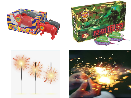 形式多样、运动范围相对较小的低空产品,燃放时产生火花、烟雾、爆响等效果,有玩具造型、线香型、摩擦型、烟雾型产品等。产品小类分为玩具造型、线香型、烟雾型、摩擦型等。