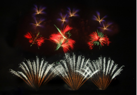 小礼花是指发射筒内径<76mm,筒体内发射出单个或多个效果部件,在空中或水域产生各种花型、图案等效果。可分为裸药型、非裸药型;可发射单发、多发。