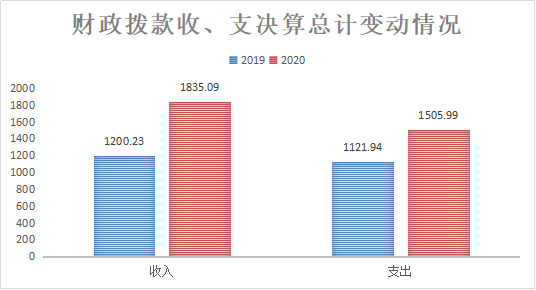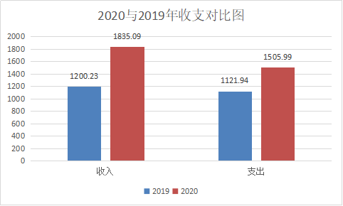 2020年度收入为1835.09万元,与2019年相比收入增加634.86万元,增长52.89%。2020年度支出1509.99万元,与2019年相比支出增加384.05万元,增长34.23%;主要变动原因是行政区划变更,原南山街道办事处合并到大渡口街道办事处后财政收入支出较2019年投入均变化。