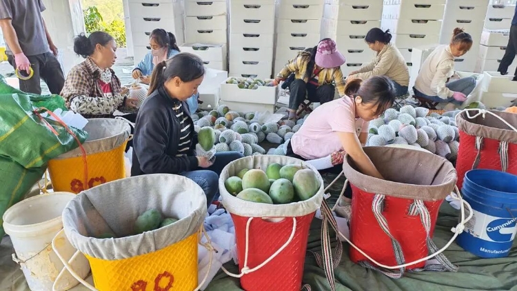 记者在该村一分拣分装点看到,包装好的商品果码成了一堵厚厚的白墙,预计有近万斤芒果。“我们来收购的这批芒果主要出口俄罗斯。这里的芒果品质不错,一定很受消费者欢迎。”收购商李先生说,他们预计要收购10万斤。