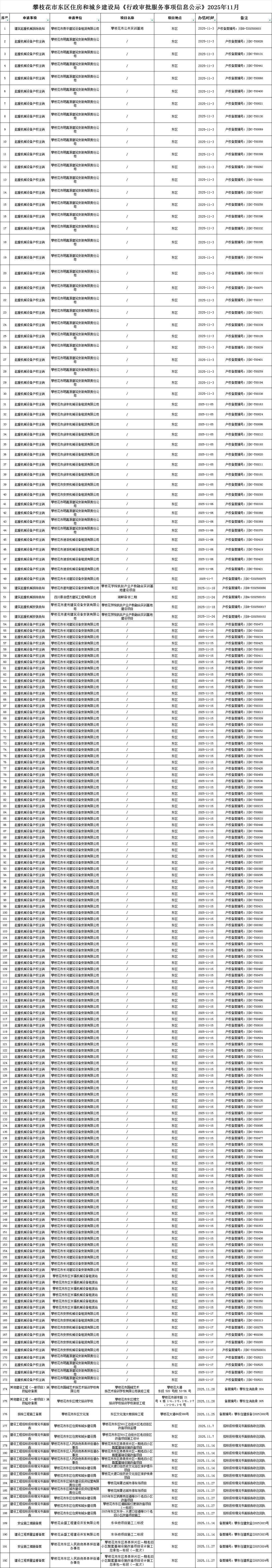 攀枝花市东区住房和城乡建设局《行政审批服务事项信息公示》2025年11月
