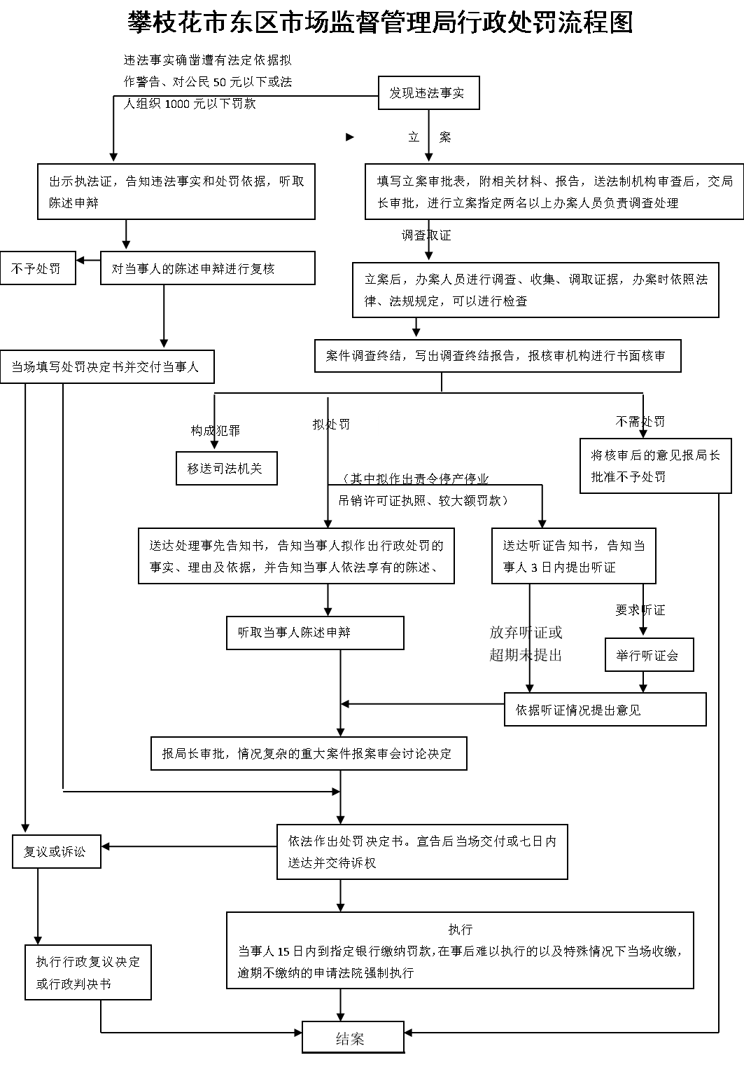 攀枝花市东区市场监督管理局行政处罚流程图
