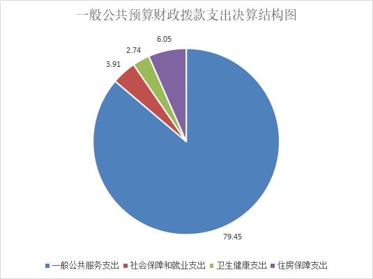 2019年一般公共预算财政拨款支出92.15万元,主要用于以下方面:一般公共服务(201类)支出79.45万元,占86.22%;社会保障和就业(208类)支出3.91万元,占4.24%;卫生健康(210类)支出2.74万元,占2.97%;住房保障(221类)支出6.05万元,占6.57%。