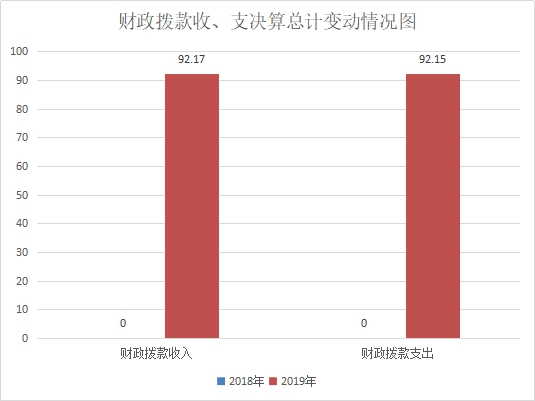 2019年财政拨款收入总计92.17万元、支出总计92.15万元。与2018年相比,财政拨款收入增加92.17万元、增长192.17%,支出增加92.15万元、增长192.15%。主要变动原因是本单位为2019年新成立的区级预算单位,2018年无财政拨款收入。
