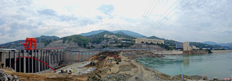 记者在项目现场看到,在围堰拆除施工区域,原本横跨金沙江的围堰已不见了踪影。而上下围堰之间的银江水电站坝体已初步显露,颇为壮观。
