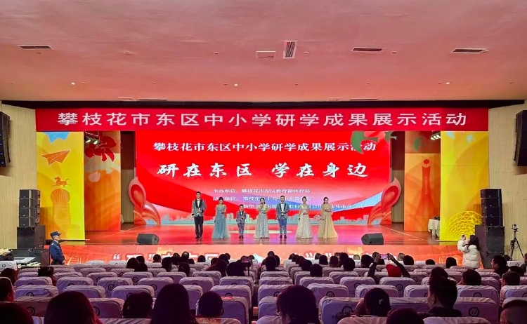 紧接着,场内成果汇报环节精彩上演。小学段以“攀果为什么这么甜”为主题,通过诗舞融合的形式展现自然之美;初中段聚焦“钢铁是怎么炼成的”,用情景剧传承三线精神;高中段围绕“花儿为什么这么红”,以表演形式展望未来发展。各学段多样化的艺术表现形式,将研学所思所获升华于舞台,赢得了现场观众的阵阵掌声。