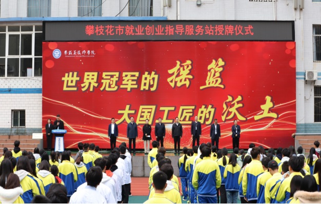 为深入落实就业优先战略,健全公共就业服务体系,推动就业创业服务向校园延伸,2025年11月24日上午9时,“攀枝花市就业创业指导服务站(攀枝花技师学院站)”授牌仪式在技师学院庄严的升旗仪式上隆重举行。