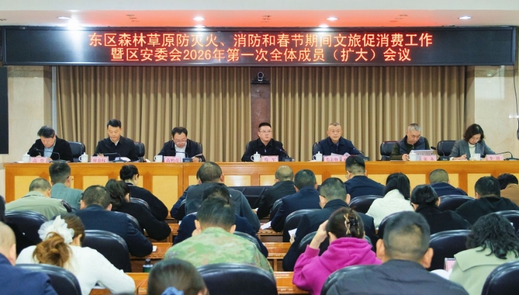 2月2日,东区森林草原防灭火、消防和春节期间文旅促消费工作暨区安委会2026年第一次全体成员(扩大)会议在阳光综合楼会议室召开。区委书记苟军出席会议并讲话。