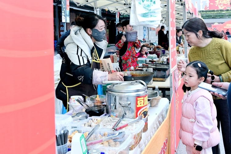 这气息,也融在人们的交谈里。“我小时候,过年最盼的就是这些。”陪儿子买糖画的曾一鸣笑着说,“今天过来玩,好像我也重温了一次童年。”旁边休闲区里,几家亲朋围坐在一起,分享从集市买来的零食,闲话家常,那份松弛与惬意,仿佛让时光也放慢了脚步。