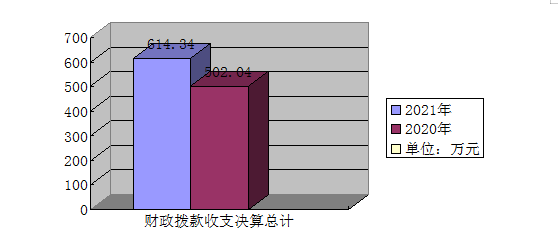 2021年财政拨款收、支总计614.34万元。与2020年相比,财政拨款收、支总计各增加112.3万元,增长22.4%。主要变动原因是:新增项目和人员。