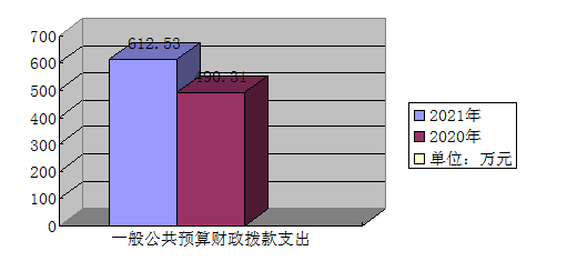 2021年一般公共预算财政拨款支出612.53万元,占本年支出合计的100%。与2020年相比,一般公共预算财政拨款支出增加122.22万元,增长24.9%。主要变动原因是:新增项目和人员。