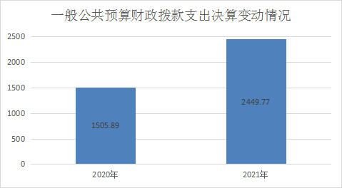 2021年一般公共预算财政拨款支出2449.77万元,占本年支出合计的87.81%。与2020年相比,一般公共预算财政拨款支出增加943.88万元,增长62.67%。主要变动原因是专项业务总投入增加。