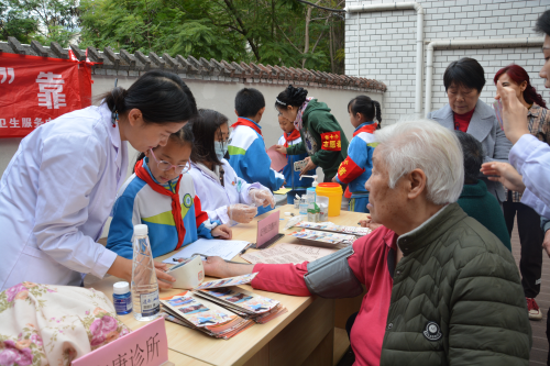 活动现场,前来参与义诊检查的老年人络绎不绝,在小小志愿者的引导下,大家依次进行量血压、测血糖和听力健康咨询等。来自瓜子坪社区卫生服务中心的医生,详细询问老年人的身体状况,耐心解答他们在常见病、多发病及慢性病等方面遇到的问题,指导他们如何合理用药。同时,来自十小的小小志愿者们一边协助医务人,一边发放宣传册,宣讲健康知识。让老年人们做到疾病早预防、早诊断和早医治,提高防病治病意识。刚检查完的李奶奶高兴地说到,“现在上了年纪了,有个小毛病也懒得去医院,今天的义诊活动就在社区广场,真是太贴心了!”
