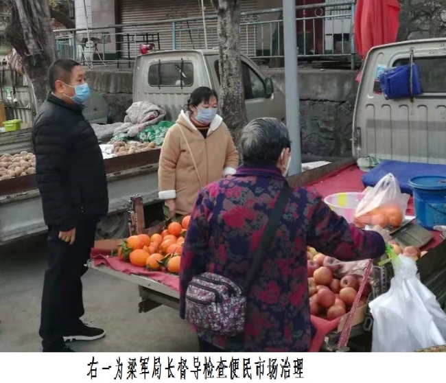 截止目前,我局督导、协助各街道(镇)关闭便民市场5个,取缔销售肉类摊位12个,治理现场宰杀畜禽1起,在市场周边设置宣传横幅6条,张贴告示13张,散发宣传单400余份,劝离未戴口罩进入便民市场人员90余人(次),劝导占道经营车辆 85台(次),清理流动摊贩 320余人(次)、占道经营商家100余家(次)。