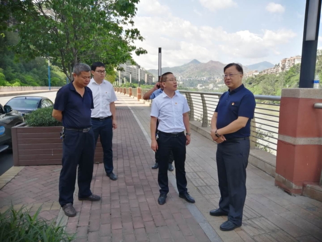 7月22日,区委罗军书记调研防汛工作。区委常委、统战部部长、区总工会主席李孝彬,区防汛办、区发改局、区应急管理局、区综合行政执法局、市自然资源和规划局东分局及相关街道(镇)主要负责同志陪同调研。