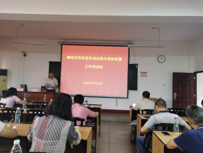 7月31日上午,为推进东区生活垃圾分类和处置工作,东区在市委党校阶梯教室组织召开专项培训会,会议由区综合行政执法局党委副书记、区环境卫生服务中心主任杨洌主持,攀枝花市城市管理行政执法局市容科副科长唐洪涛主讲,区委宣传部、区委目标绩效办、区发改局等区级相关部门和各街道(镇)垃圾分类工作分管领导、具体工作人员,以及社区骨干等33个单位共计80余人参加培训。