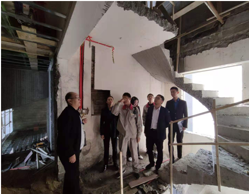 11月12日,区综合执法局执法人员查勘菩提苑8栋23-2号户主顶楼违法搭建结构板、侵占屋顶公共区域情况。