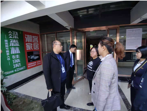 11月18日,区综合执法局执法人员查勘菩提苑2栋1-1号一楼搭建晴雨蓬情况。