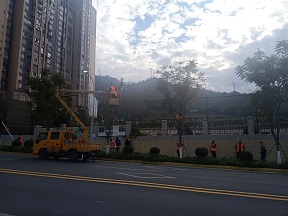 1月20日,区城市建设管理监察队队长邱昭胜在110指挥中心现场指导2021年春节氛围营造布展。