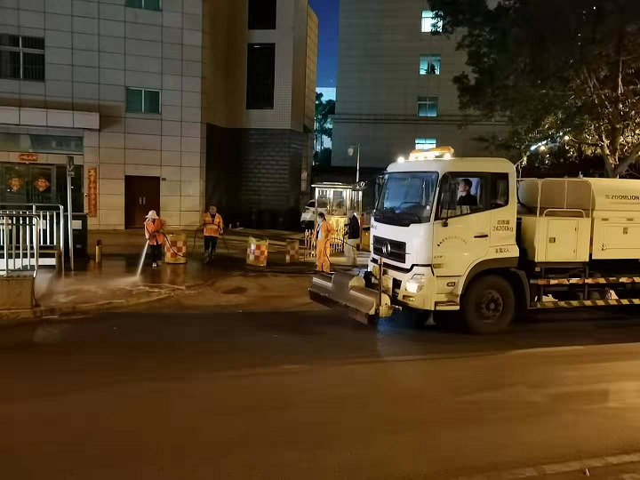 活动中,我局结合近期天气情况,组织工作人员32名,利用车流量小、行人少的夜间时段,采取机械化作业和精细化人工保洁相结合的方式,出动水车90台(次),用水720余吨,对机场路口、临江路口、武警支队、天津路八中路口、北京华联、攀枝花公园、法院、川剧团、沃尔玛、密地桥南等地段的地下道通、路沿石和人行道,进行高压冲洗,做到路面基本现本色,最大限度降低尘土残存量,减少道路扬尘,全面提升城市洁净水平及市民日常出行的舒适度。