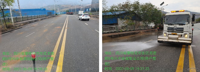 6月9日18:30时许,应林业部门来电,林业部门在龙密路6号兴中金属缺口公司附近路段进行路沿景观花台的迁移工作,在搬迁过程中,景观花台的泥土造成该路段近1公里的道路被严重污染,需环卫车队出手帮助林业部门解决困难,进行道路泥土清理、冲洗。