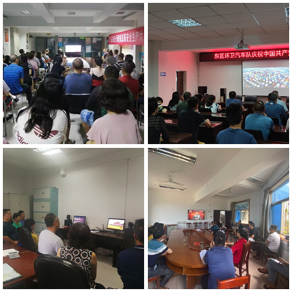 7月1日,庆祝中国共产党成立100周年大会在北京天安门广场隆重举行,中共中央总书记、国家主席、中央军委主席习近平发表重要讲话。区综合执法局组织全体机关干部职工在二楼会议室收看直播,下属单位区环卫服务中心、炳草岗环卫所、东城环卫所、区环卫汽车队和区固废流转站分别在所在单位会议室或办公室收看大会直播。