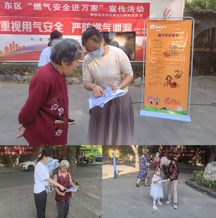 为持续巩固“燃气安全进万家”活动宣传教育成果,进一步加强安全用气宣传,把宣传教育工作落实到最小单元,4月23日上午,东区综合行政执法局联合炳草岗街道湖光社区居民委员会、攀枝花华润燃气有限公司开展燃气安全进社区宣传活动。