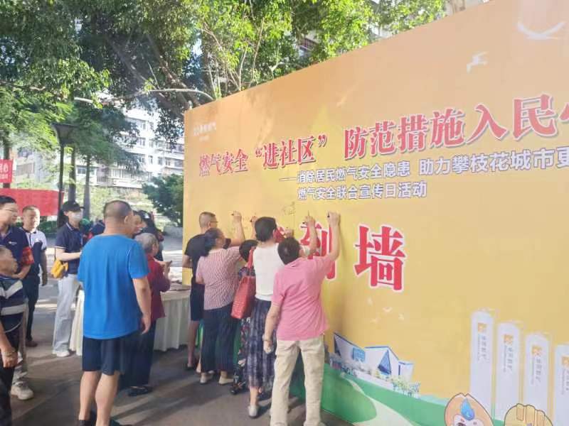 本次活动由东区综合行政执法局牵头,组织炳草岗街道、攀枝花华润燃气有限公司、望江社区等单位的相关人员、辖区居民群众和志愿者,采取签名墙、图文展板、电视滚动播放安全用气 宣传短片、发放燃气安全使用手册和燃气安全监督卡、猜迷语、知识抢答、现场咨询、对部分困难群众送保险等丰富多样的活动开展宣传。