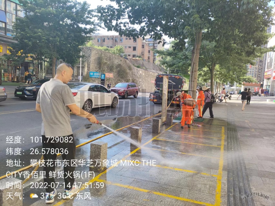 7月14日下午,东区综合行政执法局集中力量对万象城道路进行清洗,给酷暑下的城市道路除去污垢,“洗洗澡”,让城市更美好。