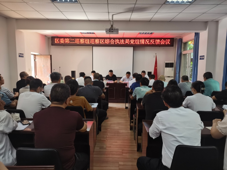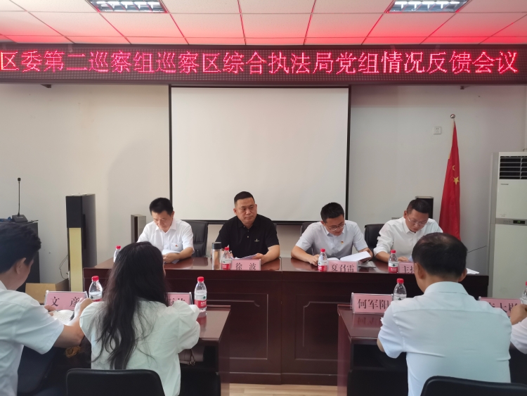 2023年5月17日,党组书记、局长陈建宇在区环卫汽车队二楼会议室召开区委第二巡察组巡察区综合执法局党组情况反馈会议。区委常委、政法委书记徐波出席会议并发表讲话,区委组织部常务副部长、区委巡察工作领导小组成员夏召雷出席会议,并就存在问题的整改工作提出了明确要求。区委第二巡察组全体人员、区纪委监委党风政风室副主任刘雨佳、区综合执法局全体职工及服务对象代表(自强清洁有限公司、行建城市环卫服务有限公司)参加会议。