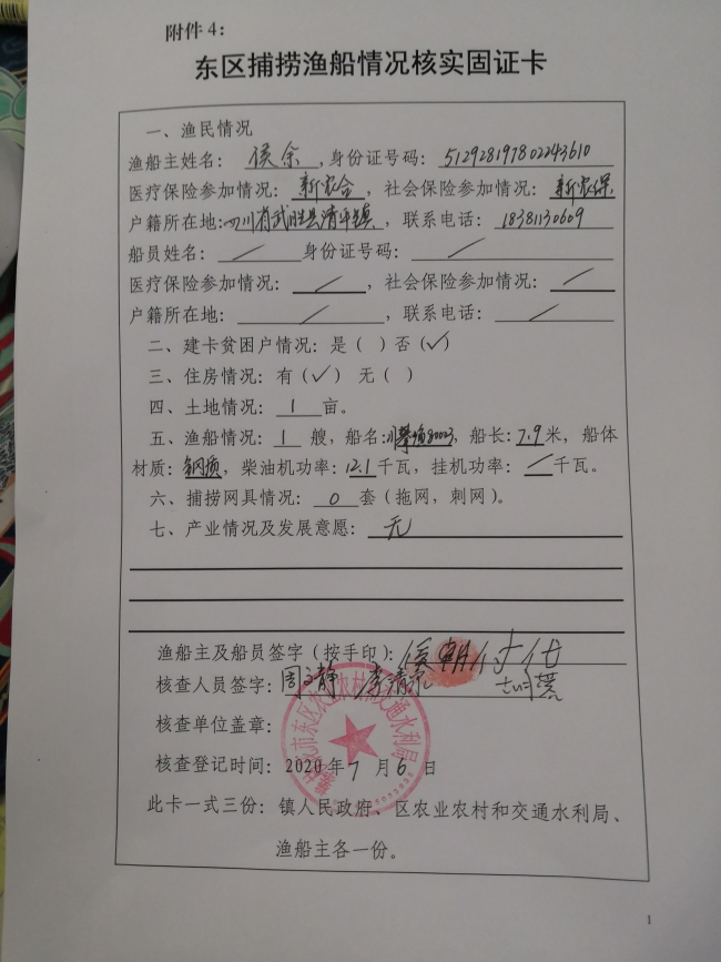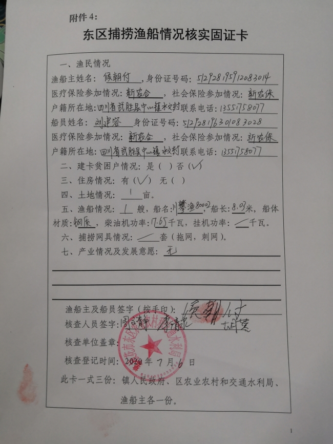 根据中央、省、市关于做好长江流域重点水域禁捕和退捕渔民安置保障工作相关要求,2020年6-7月,我局组织专人对东区辖区内持证渔船及船员信息进行了调查摸底和现场固证,目前东区辖区内共有持证渔船3艘,船员5人,现将相关渔船证照、固证情况和船员信息公示如下,如有异议请于5个工作日内向东区农业农村和交通水利局农业农村股反映,联系电话:2227515,联系人:胡蓉。