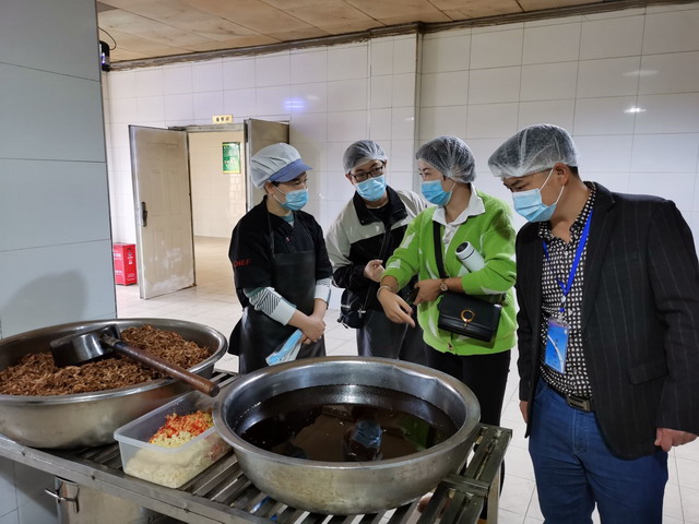 工作例会结束,在张翔校长的带领下,大家一起到供餐单位进行餐食制作安全检查,现场查看了餐食制作环境、流程、工具、证照、食材保存等环节,查验了食品采购和检验记录,检查组人员还详细询问了有关消毒、餐食制作操作规范等问题。配餐单位陪同检查人员对餐食制作环节和询问做了详细的介绍,并表示将根据代表们的建议进一步规范送餐管理,努力为师生提供可口、营养、卫生的午餐。