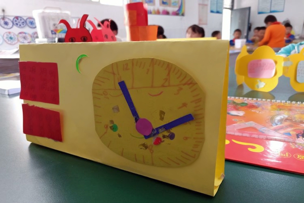 设计制作前,付老师以自己录制的微课视频进行展示,同学们认真观看老师制作小熊台历的视频,了解制作台历的步骤。课上,她出示学生的台历作品,引导学生发现问题,在制作的时候注意避免出现相同的错误。