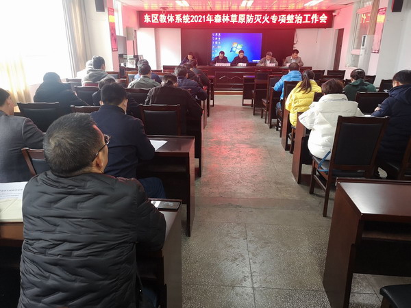 2021年1月12日下午,东区教体局在局三会议室召开2021年森林草原防灭火专项整治工作会,结合教体实际对贯彻落实《攀枝花市人民政府2021年森林草原防火命令》相关要求及东区森林草原防灭火指挥部2021年第一次全体(扩大)会议精神进行研究部署。区委教育工委书记、区教体局党组书记、局长陈冬兵及局班子成员出席会议,机关股室长,区属各学校校长(书记)30余人参会。会议由区委教育工委副书记刘家斌主持。