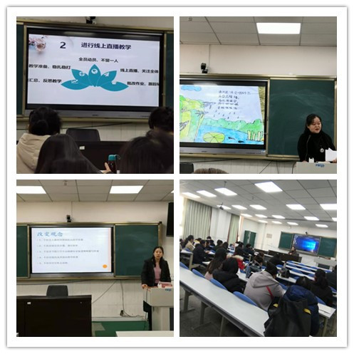 本次会议由陈蕾竹主任主持,首先任建清助理就本次培训活动提出了整体要求,指出大家要目标明确,在汲取别人经验的同时做好网络信息化教学的准备,提升自身的信息化教学水平。接着由范睿老师就去年春季网络教学作了以“信息化教学和疫情下网络授课经验分享 ”为主题的相关发言。随后苏知利老师进行了线上教学经验总结,积极倡导利用电话、网络钉钉、微信等通讯工具和手段,了解掌握学生学习情况。最后,教导处陈主任指出:每位老师面对班级若干成员,并不是孤军奋战,遇到问题时,备课组成员群策群力讨论解决。如果开学上网课,大家都要做到“学生不到校,学习不停步”。疫情就是命令,防控就是责任,师生一起努力,共同完成好“战疫”这堂课。