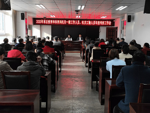 2月20日上午,攀枝花市东区教育体育局2020年机关一般工作人员年度考核工作会在局机关三会议室召开。会议由副局长许莉同志主持,机关全体工作人员及服务对象代表共65人参加了会议。