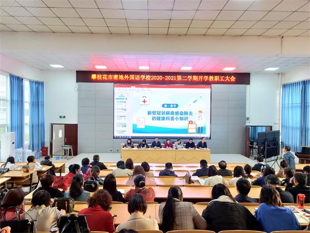 新学期、新气象、新开始,告别寒假,又迎来了新的一学期,为了确保开学工作的顺利开展,2021年2月20日,攀枝花市密地外国语学校在师生服务中心五楼会议室召开了2020—2021学年度第二学期教职工大会,全体教职员工参加了会议。会议由密地外国语学校执行校长李美文主持。