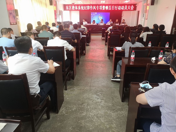 为深入贯彻落实东区作风纪律整顿工作部署,持续加强教体系统党员干部纪律作风建设,打造勤政务实、清正廉洁、纪律严明的干部队伍,4月19日上午,东区教体局在局三会议室召开纪律作风专项整顿百日行动动员会,传达开展纪律作风专项整顿的重要意义,对相关工作进行安排部署。局班子成员,机关各股室负责人,区属各学校校长、书记、专职副书记,攀成外校长、书记,泊森高中校长、书记,民办教育学校党(总)支部书记等70余人参会。会议由区委教育工委副书记刘家斌主持。