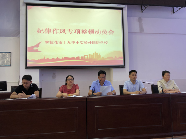 为贯彻《攀枝花市东区教育和体育局2021 年师德师风建设活动实施方案》,全面深化新时代教师队伍建设改革,切实提升全区教师思想政治素质和师德水平,落实《东区纪律作风专项整顿百日行动方案》,2021年4月21日,攀枝花市十九中小实验外国语学校召开教职工大会进行集中学习培训。