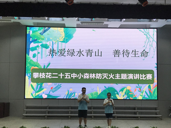为了更好的做好学校森林防灭火宣传教育工作,不断提高师生森林防灭火意识和法制观念,最大限度减少森林火灾的发生,保护森林资源安全,2021年5月23日晚上,攀枝花市二十五中小开展了“热爱绿水青山,善待生命”森林防灭火主题演讲比赛。