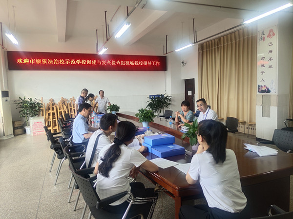 检查组同志通过听汇报、查阅档案资料、座谈、实地察看等形式,了解了我校依法治校具体工作开展情况,对照检查细则进行认真评估,全面剖析查验了我校的依法治校工作。
