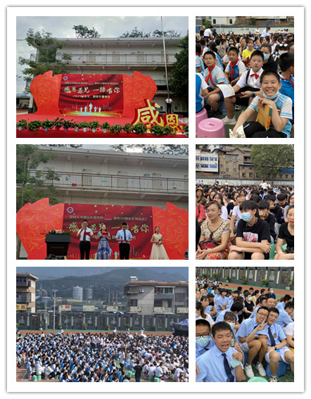 在温情的音乐声中,同学们跟随老师走进了回忆,初中三年、小学六年有太多幕美好的画面,承载了太多美好的回忆。接着,学生代表给校领导和老师们献上饱含深情的鲜花,表达了对母校、对老师浓浓的情意,同学们更是用歌声和朗诵表达了对母校的不舍。