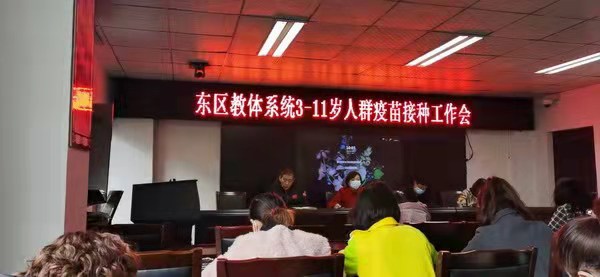 为加快推进辖区学校3-11岁适龄无禁忌儿童青少年新冠疫苗接种工作,确保在2021年12月底前完成全程接种目标任务,在校园尽早尽快形成免疫屏障,保障师生身体健康和生命安全。11月24日,东区教体局在局三会议室召开3-11岁人群疫苗接种工作推进专题会。东区教体局副局长许莉、体卫艺股、教育股相关同志、区属学校(幼儿园)、市直属相关学校(幼儿园)负责人参加会议。会议由体卫艺股股长陈伟主持。