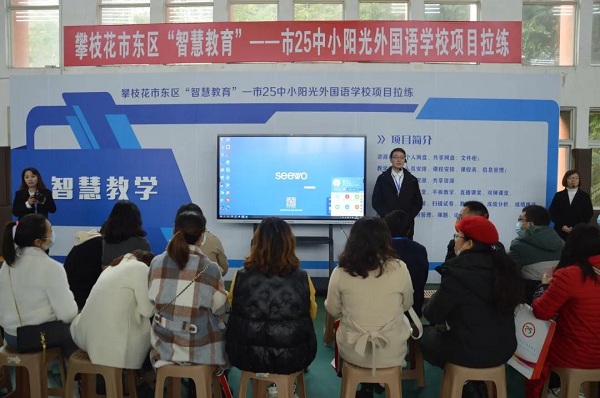 一根细细光纤,三块高清屏幕,一些直播设备,搭建了一座“线上跨区”大桥,将两所学校紧紧连在一起。此时,攀枝花市二十五中小阳光外国语学校和大渡口外国语学校的老师们,正坐在屏幕的两端进行知识、经验的碰撞和研讨。全新的双向实时高清互动直播系统实现随时随地高清视讯互联。同步教研使不同校区的老师不再受时间和空间的限制,真正体现了资源共享与优势互补。
