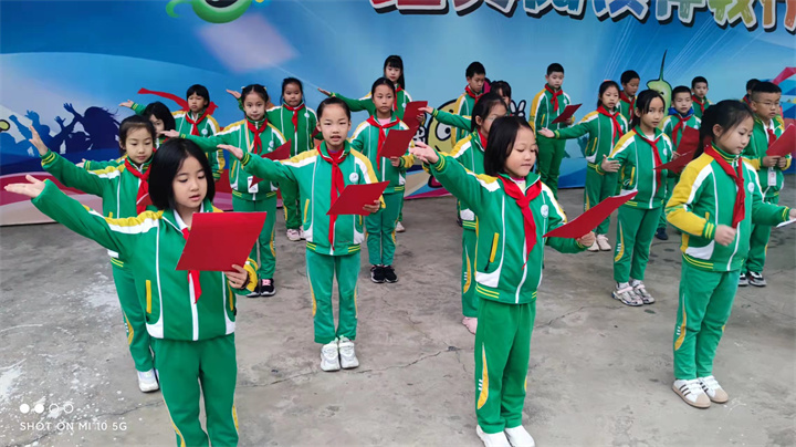 “在最美丽的校园,开始一生最留恋的年华;在最温暖的集体开始一生最真切的体验。冉冉东升霞光万缕的太阳啊,你是我们青少年成长的希望,慈祥温暖又亲爱的祖国啊,让我们在您怀抱里幸福成长……”这是四位领诵同学宛转悠扬的真情告白。