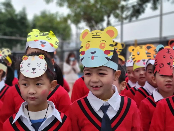是什么让孩子们一路欢笑直奔校园?在攀枝花市花城外国语学校,开学第一天,“冰墩墩”和“乖乖虎”就齐聚校园,为孩子们的新学期加油助力。“哇,有冰墩墩跟乖乖虎!”家长和孩子们纷纷和冰墩墩、乖乖虎拥抱、打卡合影,拥抱创新与未来。校园内,孩子们寒假生活的成果,也终于“亮相”啦!一二年级的宝贝们用画笔画虎,表达着对美好生活的祝福和向往;三四年级的孩子们“巧手做虎”,一顶顶虎帽、一双双虎鞋、一盏盏虎灯都是孩子们自己设计、裁剪、粘贴的;四五六年级的主题是“虎年写虎”,一笔一画端正有力,一副副春联是孩子们对美好生活的祝福。