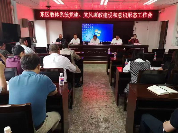 2022年5月16日下午,东区区委教育工委理论学习中心组学习(扩大)会在局机关三会议室召开。区委教育工委书记、区教育和体育党组书记、局长曾清林主持会议并讲话。