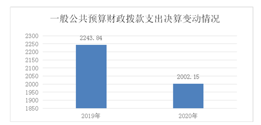 2020年一般公共预算财政拨款支出2002.15万元,占本年支出合计的87.62%。与2019年相比,一般公共预算财政拨款减少241.69万元,下降10.77%。主要变动原因是1、公用经费较去年压缩;2、在项目预算支出上进行优化。